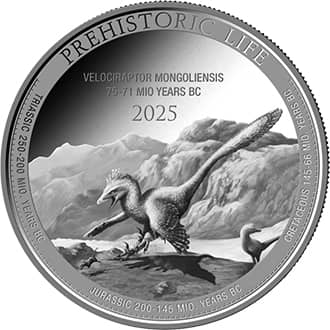 Avers moneda argint Velociraptor 1 oz 2025 RD Congo